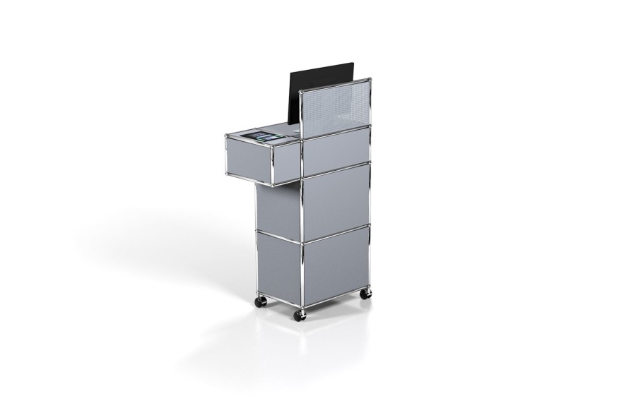 One work station with one access control gate. Includes one keyboard extension shelf, one printer extension shelf and CPU storage.